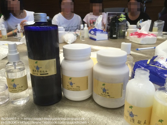 三小時的課堂內學會製作洗髮水連沐浴露二合一、護髮素及萬用膏,非常合用。
